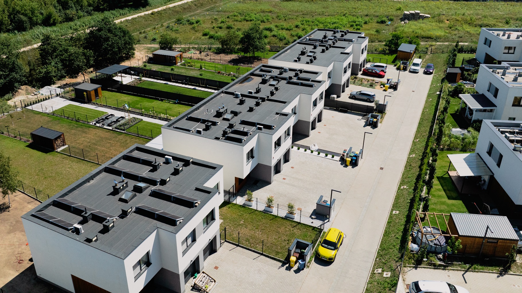 W standardzie wykończenia przewidziane zostały garaże, miejsca postojowe i ogródki.
