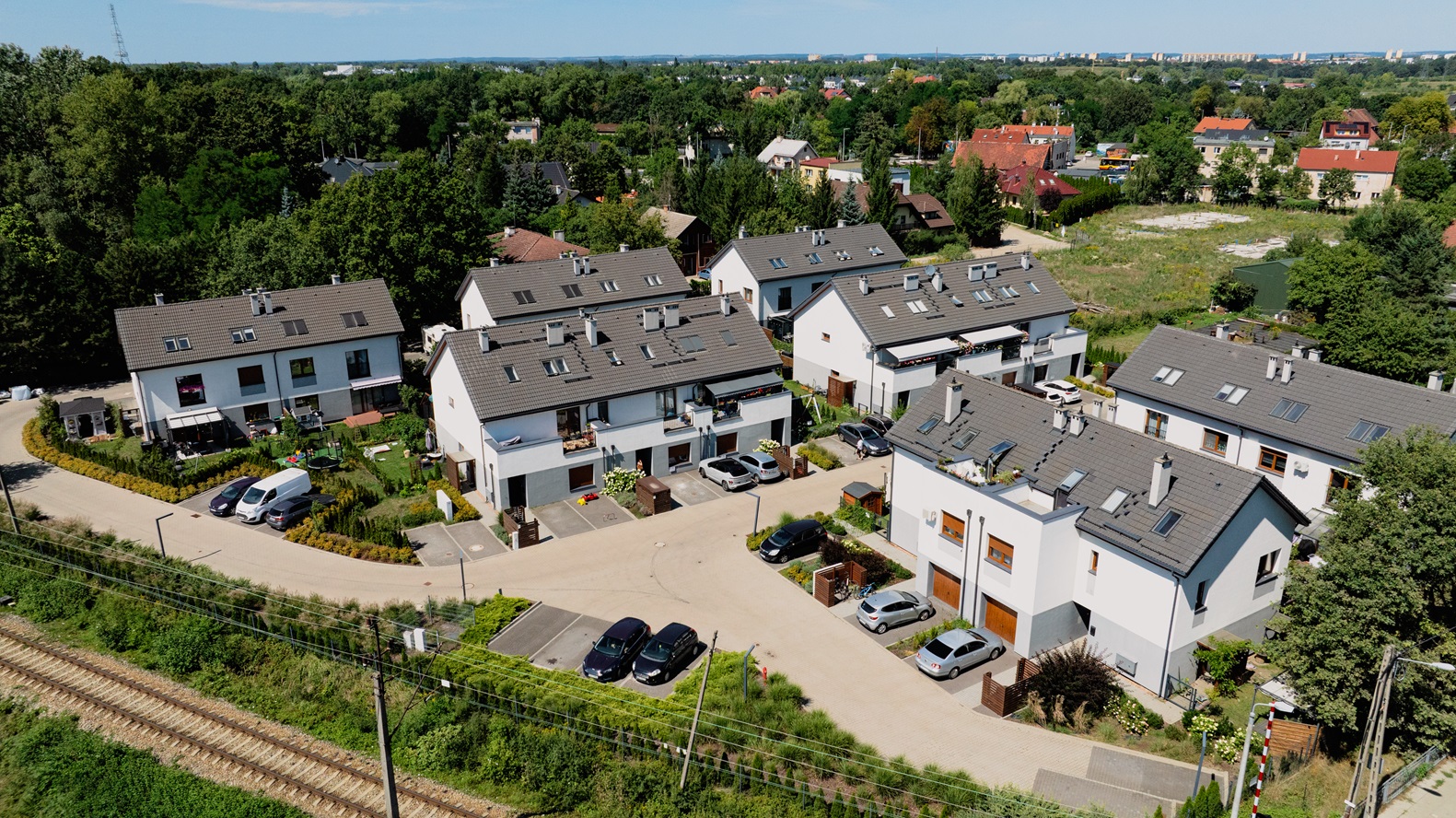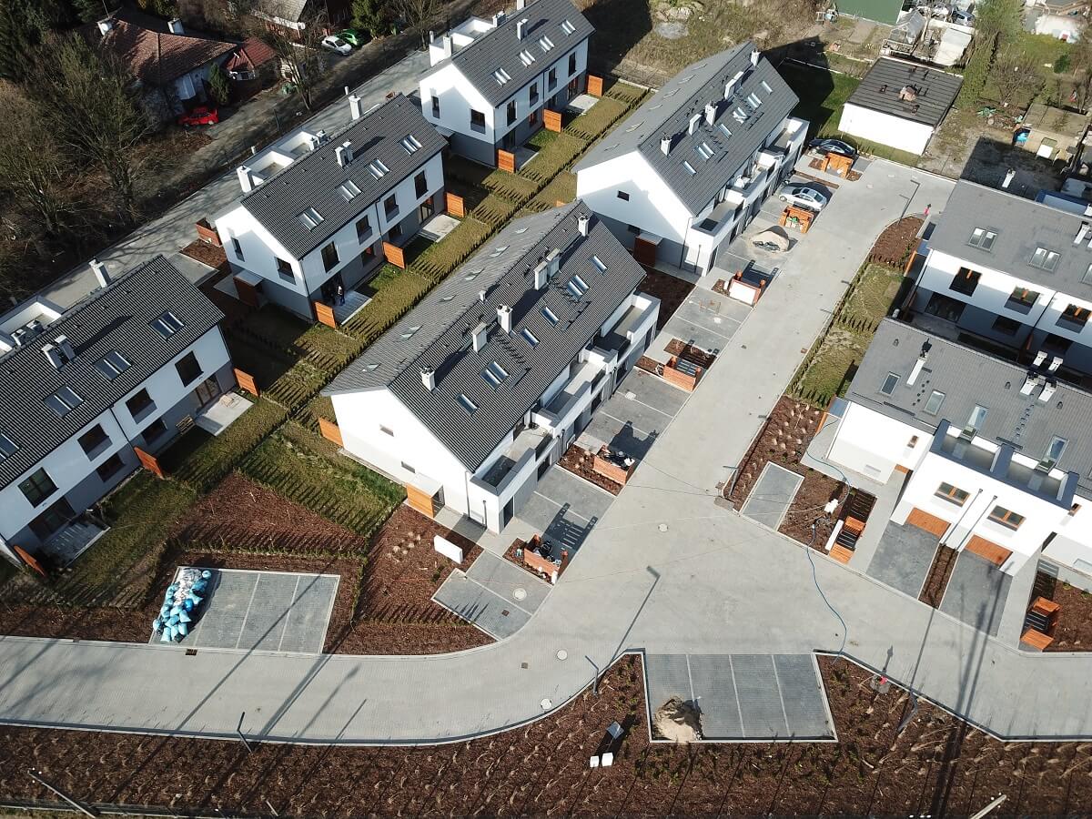 W standardzie wykończenia przewidziane zostały naziemne miejsca postojowe naziemne i ogródki.